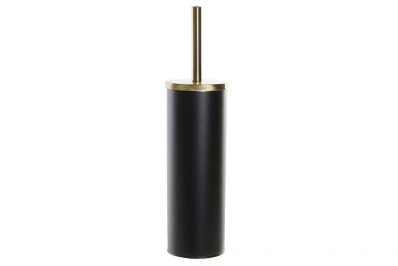 Escobillero metálico negro en acero inoxidable con detalles dorados, diseño elegante y minimalista. Perfecto para baños modernos, ofrece durabilidad y estilo. Fácil de limpiar y mantener. Ideal para quienes buscan accesorios de baño sofisticados y funcionales.