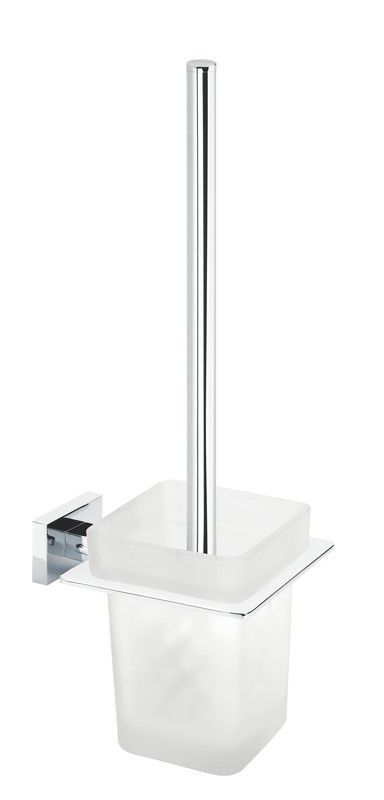 Escobillero de pared Nick en acabado cromo, ideal para baños modernos. Fabricado con acero inoxidable y plástico opalino, ofrece durabilidad y estilo. Diseño cuadrado y minimalista con montaje mural sencillo. Perfecto para mantener tu baño limpio y organizado con un toque elegante.