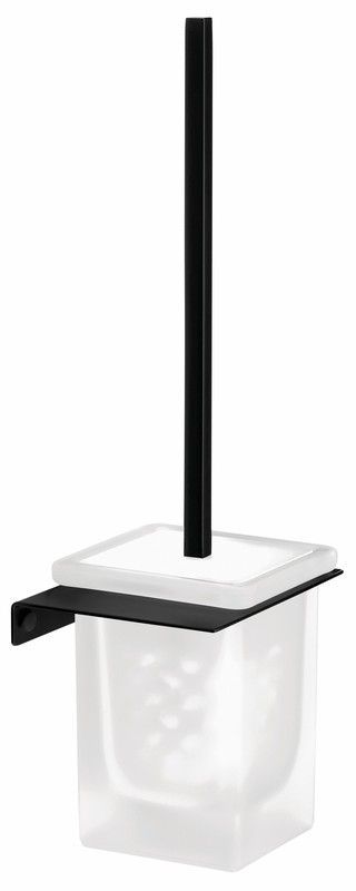Escobillero de pared Plexo negro, diseño moderno y minimalista para baño. Fabricado en plástico resistente, con tapa transparente y varilla negra para mantener la escobilla limpia. Ideal para baños con estilo contemporáneo. Fácil instalación en pared con soporte lateral. Mantén tu baño ordenado y con un toque elegante.