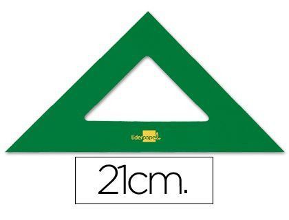 Escuadra Liderpapel de 21 cm en acrílico verde, ideal para dibujo técnico, geometría y trabajos de bricolaje. Su diseño triangular con hueco central facilita la precisión en trazos y medidas. Resistente y de fácil manejo, perfecta para estudiantes, profesionales y amantes del dibujo.