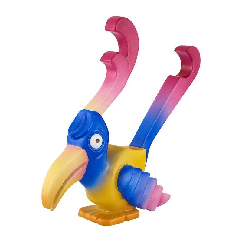 Escultura decorativa en forma de ave exótica, ideal para adornar espacios interiores o exteriores. Fabricada en plástico de alta calidad, presenta colores vibrantes con degradados de rosa a azul, pico amarillo y detalles naranjas. Su diseño llamativo y divertido aporta un toque de alegría y originalidad a cualquier ambiente. Perfecta para amantes d