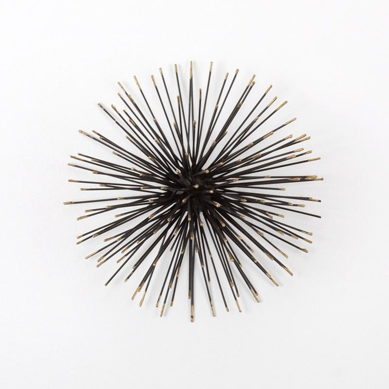 Escultura de metal negro y dorado con diseño estelar, perfecta para decorar paredes en espacios modernos o minimalistas. Con dimensiones de 29x15x29 cm, aporta un toque sofisticado y artístico a cualquier ambiente. Ideal para salones, pasillos o entradas. Fabricada en metal de calidad, resistente y duradera.