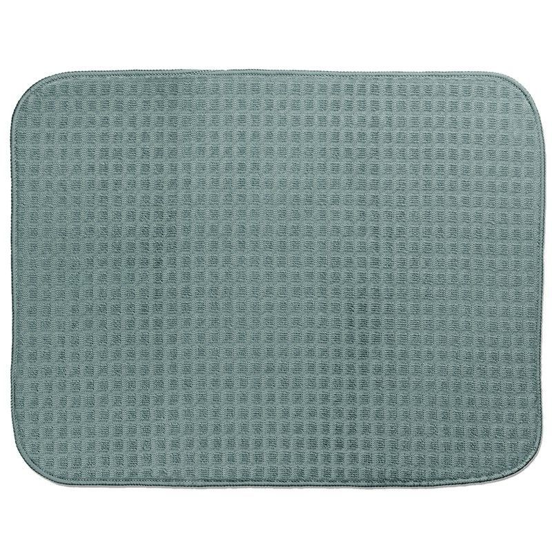 Escurreplatos absorbente Kela en color menta, fabricado en textil de alta calidad con textura en relieve para mayor eficacia. Ideal para secar platos y vasos en la cocina, manteniendo la encimera seca y limpia. Su diseño rectangular con bordes redondeados combina funcionalidad y estilo. Perfecto para cualquier hogar que busque productos prácticos y