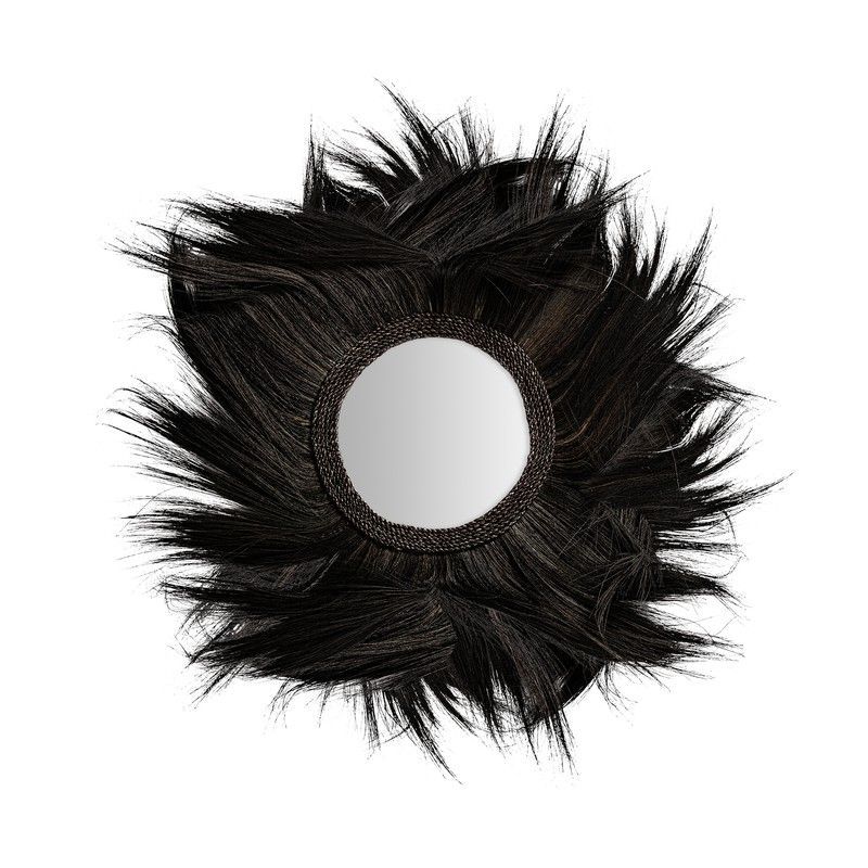Espejo de pared decorativo en negro con marco de fibra natural que simula plumas, ideal para añadir un toque sofisticado y bohemio a tu hogar. Con dimensiones de 100 x 2 x 100 cm, es perfecto para salones, dormitorios o entradas. Diseño único y llamativo que combina elegancia y estilo natural.