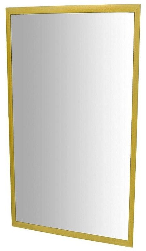 Espejo de seguridad con marco de madera en tono amarillo dorado, ideal para decorar espacios como baños, vestíbulos o salas. Medidas 100 x 65 cm. Diseño rectangular y minimalista, con acabado elegante y duradero. Perfecto para añadir luz y amplitud a cualquier ambiente.