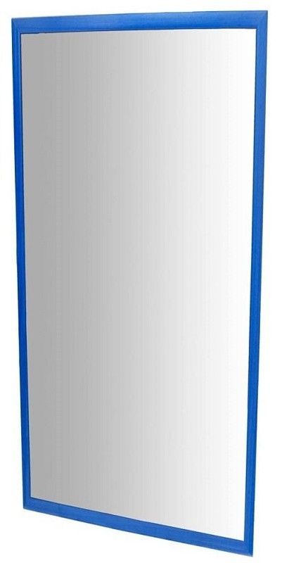 Espejo de seguridad con marco de madera pintado en azul, ideal para decorar baños, pasillos o dormitorios. Medidas 100 x 65 cm. Diseño elegante y funcional, perfecto para espacios modernos. Fácil instalación y acabado de alta calidad.
