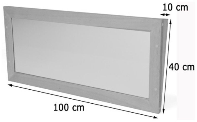 Espejo inclinado de diseño moderno con marco metálico gris y superficie reflectante de alta calidad. Ideal para cubículos y mesas de trabajo en oficinas, ofrece una solución práctica y estética para espacios reducidos. Dimensiones: 100 cm de largo, 40 cm de alto y marco de 10 cm de ancho. Perfecto para mejorar la iluminación y la funcionalidad en e