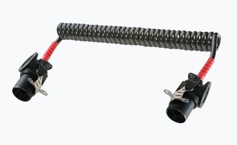 Espiral 7p-Ebs-24v con conexión ISO 7638-1 D, ideal para vehículos con sistema de 24V. Fabricado con materiales resistentes como plástico y metal, ofrece una conexión segura y flexible para equipos de audio o sistemas electrónicos. Perfecto para instalaciones en camiones, autobuses o maquinaria pesada. Conectores robustos con clips de fijación para