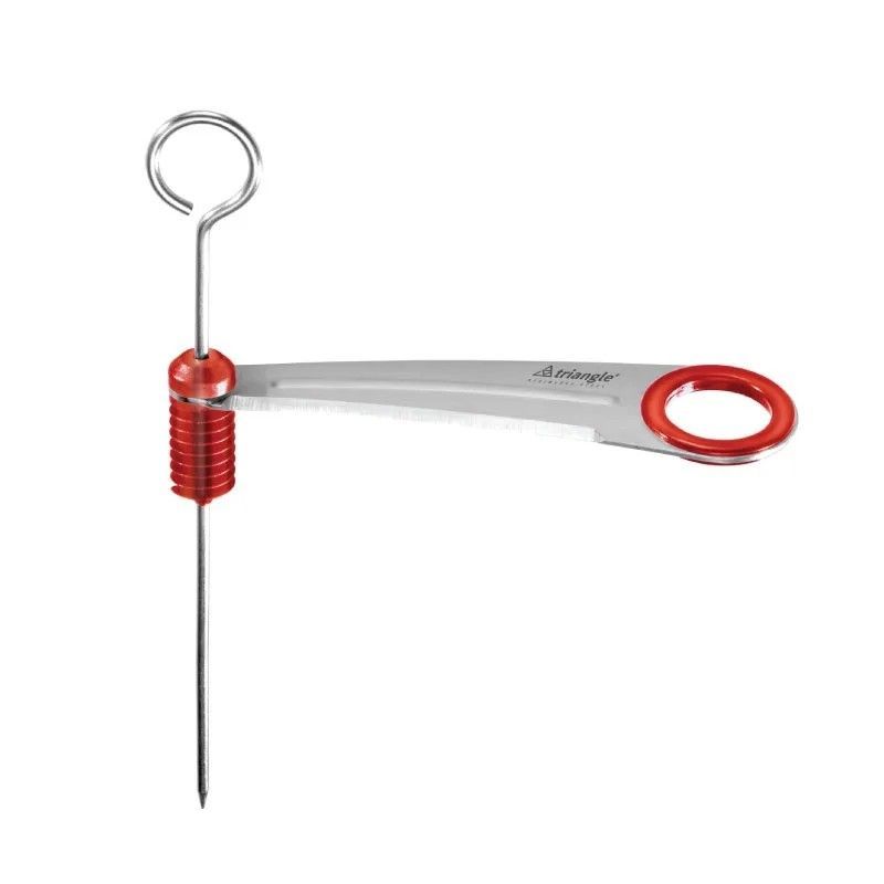 Espiralizador de rábanos de acero inoxidable con diseño ergonómico y detalles en rojo. Ideal para preparar rábanos en espiral de forma rápida y precisa. Perfecto para cocinas caseras y amantes de la comida saludable. Fácil de usar y limpiar, con anillo superior para colgar y mantener organizado.