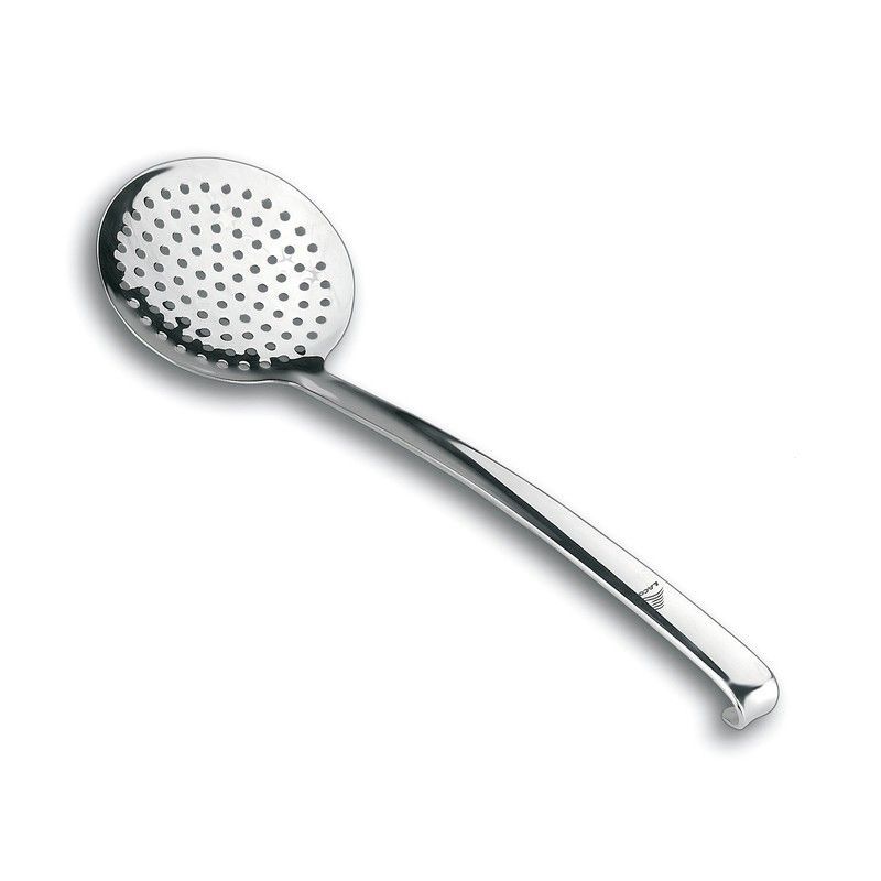 Espumadera profesional Lacor de acero inoxidable, ideal para cocinar en casa o en restaurantes. Su cabeza ovalada perforada permite eliminar espuma y grasas con facilidad. Mango largo y resistente para un manejo seguro. Diseño elegante y duradero, perfecto para cocineros exigentes.