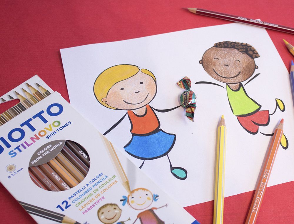 Estuche de 12 lápices de colores Stilnovo Skin Tones, ideal para niños que disfrutan colorear. Incluye tonos de piel realistas y colores vibrantes para fomentar la creatividad. Perfecto para actividades escolares, dibujo y arte infantil. Caja práctica con ventana que muestra los lápices.