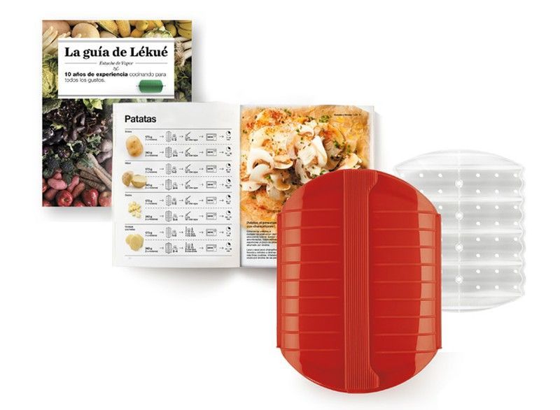 Estuche vapor Lekue para 3-4 personas, ideal para cocinar alimentos saludables al vapor. Incluye olla de vapor roja con diseño ergonómico, guía de recetas y accesorio de plástico transparente. Perfecto para familias que buscan opciones nutritivas y fáciles de usar en casa. Calidad y funcionalidad en un solo kit.