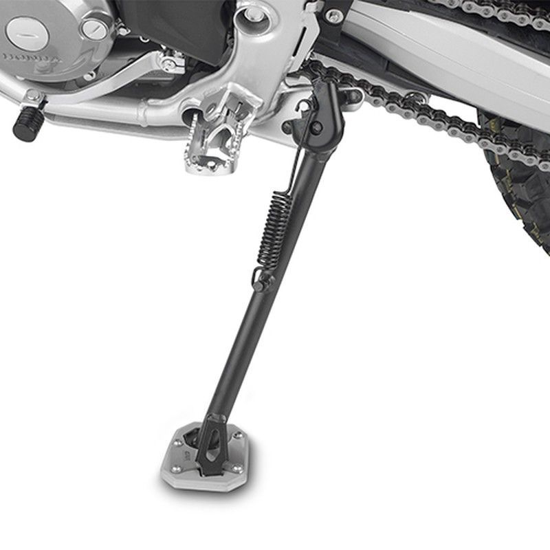 Extensión de caballete para Honda CRF 300L 2021, fabricada en acero inoxidable y metal resistente. Diseño robusto con base cuadrada y resorte para mayor estabilidad y seguridad al estacionar. Ideal para motociclistas que buscan una solución confiable y duradera. Compatible con modelos específicos, mejora la comodidad y previene daños en el suelo o