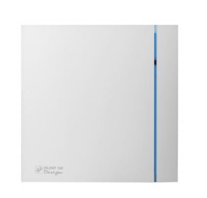 Extractor de baño S&P Silent-100 CZ Design con diseño minimalista y acabado blanco. Ideal para baños modernos, combina eficiencia y discreción con un panel liso y detalles azules. Fabricado en plástico y metal, ofrece un funcionamiento silencioso y duradero. Perfecto para espacios pequeños o grandes que buscan estilo y rendimiento.