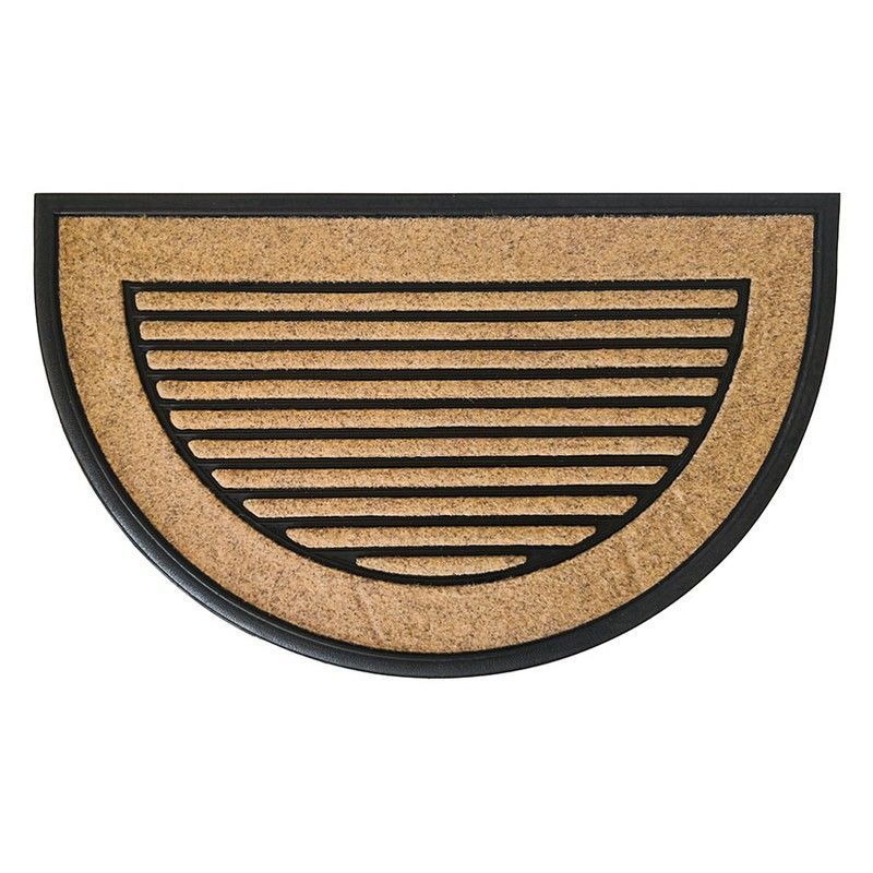 Felpudo semicircular Saona Samsara M.Lun, ideal para entradas de casa o jardín. Fabricado con fibra natural y borde de goma negra para mayor durabilidad. Diseño geométrico con líneas concéntricas que aportan estilo y funcionalidad. Absorbe suciedad y agua, manteniendo tu hogar limpio. Perfecto para uso diario en exteriores o interiores.