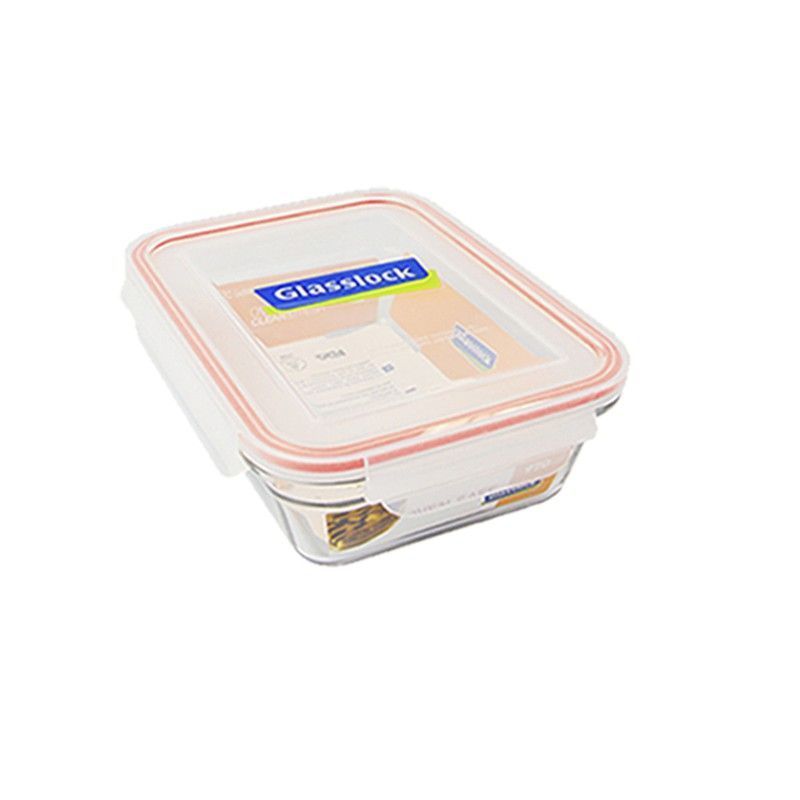 Fiambrera rectangular de vidrio hermética Glasslock de 90 cl, ideal para conservar alimentos frescos en la nevera o llevar al trabajo y escuela. Fabricada con vidrio resistente y tapa de plástico con sellado naranja para un cierre seguro. Perfecta para microondas y horno, con diseño transparente que permite ver el contenido fácilmente. Calidad dura