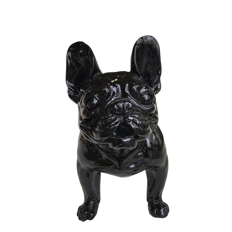 Figura decorativa de bulldog francés en color negro, con acabado brillante y detalles realistas. Ideal como regalo o adorno para el hogar, oficina o espacio personal. Hecha en resina o cerámica de alta calidad, esta pieza aporta estilo y elegancia a cualquier ambiente. Perfecta para amantes de los perros o como detalle sofisticado en fiestas y cele