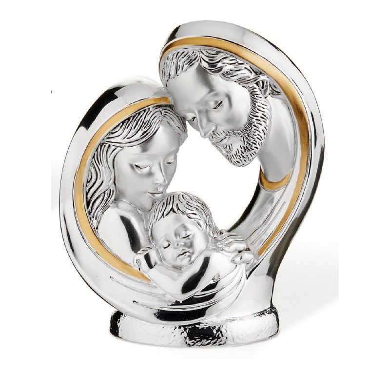 Figura decorativa de 11 cm con diseño en forma de corazón, ideal para regalar en ocasiones especiales como bodas, aniversarios o nacimientos. Hecha en metal con acabado plateado y detalles dorados, representa a una familia con amor y ternura. Perfecta para decorar el hogar o como pieza conmemorativa.
