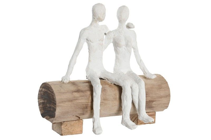 Figura decorativa de pareja en resina blanca sentada sobre un tronco de madera natural. Ideal para decorar hogar, salón o jardín con un toque rústico y romántico. Hecha con materiales de calidad, combina textura artesanal con diseño minimalista. Perfecta como pieza central en estanterías, mesas o rincones decorativos.