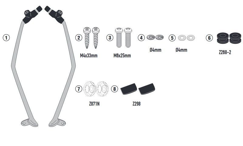 Kit de fijación para parabrisas Givi compatible con Kymco X-Town 125-300 City (20>), fabricado en metal resistente y componentes de plástico y goma para una instalación segura y duradera. Incluye todos los elementos necesarios para montar el parabrisas de forma estable y precisa en tu scooter. Ideal para mejorar la comodidad y protección contra el