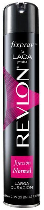 Laca para el cabello Revlon Fixpray, fijación normal y larga duración. Ideal para mantener el peinado todo el día con un acabado natural y sin brillos. Fórmula suave que no daña el cabello. Perfecta para uso diario en cualquier tipo de peinado. Envase práctico y elegante con diseño negro y rosa.