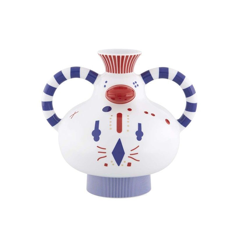 Florero decorativo en forma de gallina, fabricado en porcelana de alta calidad. Con diseño colorido y detalles geométricos en azul y rojo, ideal para decorar tu hogar con estilo folk. Perfecto para espacios rústicos, campestres o con toque artesanal. Dimensiones: 23,8 x 18,8 x 22 cm.