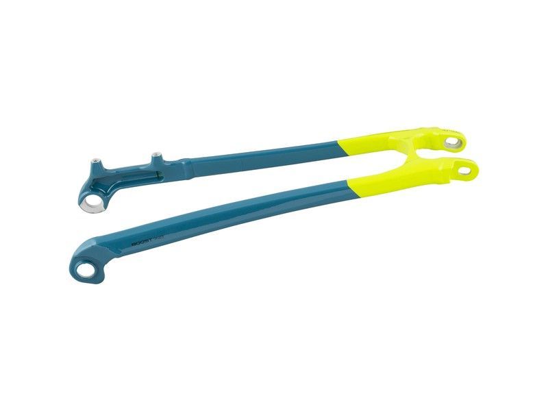 Piezas de suspensión para bicicleta de montaña, modelo Framestay Trek Rail 7 29 2020, en acabado azul con detalles en amarillo fluorescente. Fabricadas en metal de alta resistencia, ideales para ciclistas que buscan rendimiento y durabilidad. Diseño optimizado para bicicletas de 29 pulgadas, con puntos de montaje precisos y acabado profesional. Per