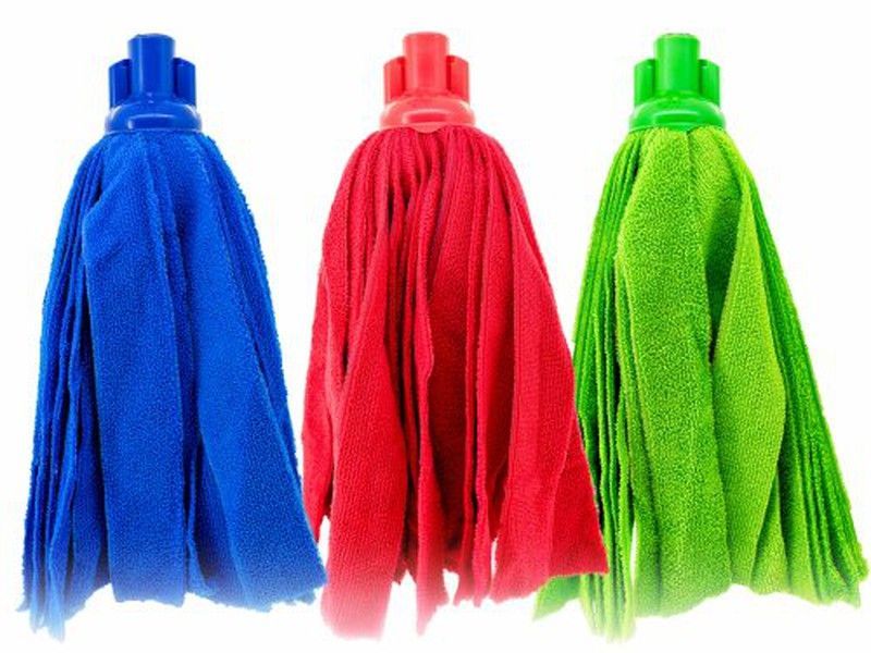 Fregona de microfibra con tiras en color azul, ideal para una limpieza profunda y eficiente de suelos. Fabricada con material absorbente y resistente, perfecta para uso en hogar y oficinas. Su diseño con mango de plástico facilita el manejo y la higiene. Incluye también opciones en rojo y verde para mayor variedad.