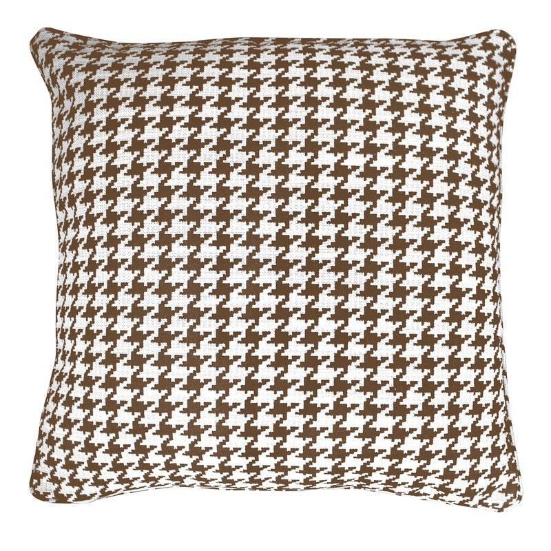 Funda de cojín, 60 x 60 cm, con estampado pata de gallo marrón y blanco, | Colección Ribe