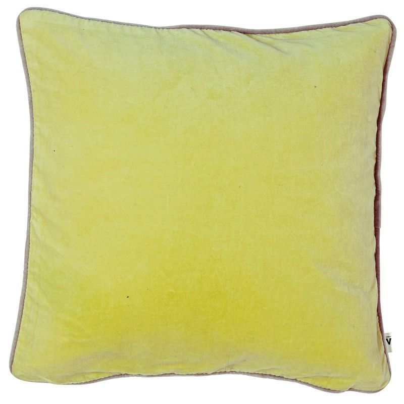 Funda de cojín de terciopelo amarillo limón, ideal para decorar sofás, camas o sillones con un toque de color vibrante y elegancia. Con ribete gris en los bordes, ofrece un acabado sofisticado y textura suave al tacto. Perfecta para espacios modernos o escandinavos. Medidas: 60 x 60 cm. Fácil de combinar y mantener.