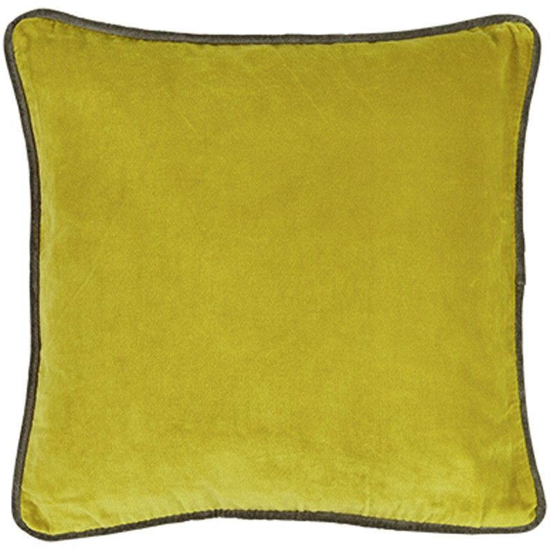 Funda de cojín de terciopelo amarillo ocre de 45 x 45 cm, ideal para decorar sofás, camas o sillones. Con ribete en marrón oscuro que aporta elegancia y contraste. Su textura suave y acabado brillante la convierten en un complemento sofisticado para cualquier espacio. Perfecta para añadir un toque de color y confort a tu hogar.