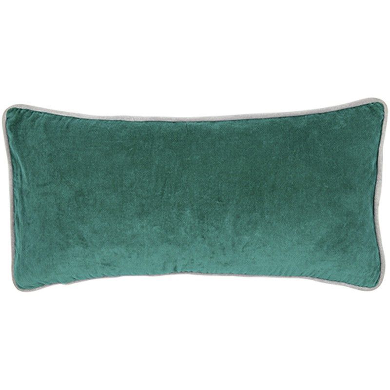 Funda de cojín rectangular de terciopelo en color verde esmeralda, con ribete blanco que aporta un toque elegante. Ideal para decorar sofás, camas o rincones de lectura. Su textura suave y acogedora la convierte en un complemento perfecto para cualquier ambiente. Medidas: 30 x 60 cm. Perfecta para añadir un toque de lujo y confort a tu hogar.