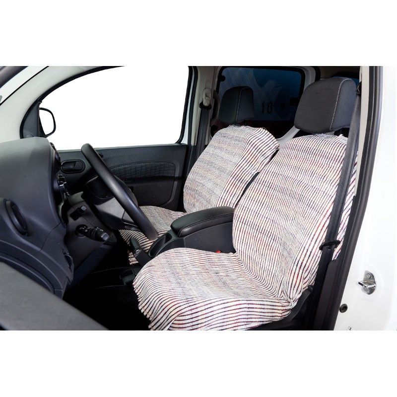 Funda jarapa adaptable para asientos de coche, ideal para proteger la tapicería original. Con diseño de rayas blancas y negras, fabricada en mezcla de poliéster y algodón para mayor durabilidad. Ajuste seguro gracias a sus bordes elásticos. Perfecta para conductores que buscan mantener su vehículo limpio y con estilo.