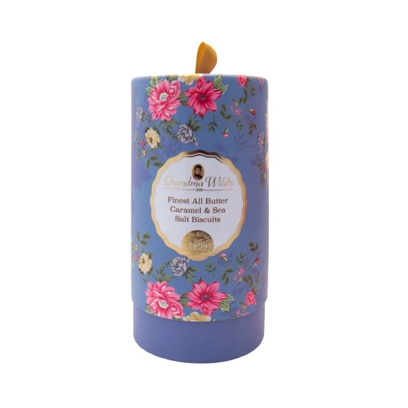 Galletas de caramelo y sal marina de Grandma Wilds en elegante tubo floral victoriano. Confeccionadas con mantequilla de primera calidad, estas galletas británicas ofrecen un sabor dulce y salado perfectamente equilibrado. Ideal para disfrutar como merienda gourmet o regalo sofisticado. Embalaje de 150g con diseño clásico y detalles dorados.