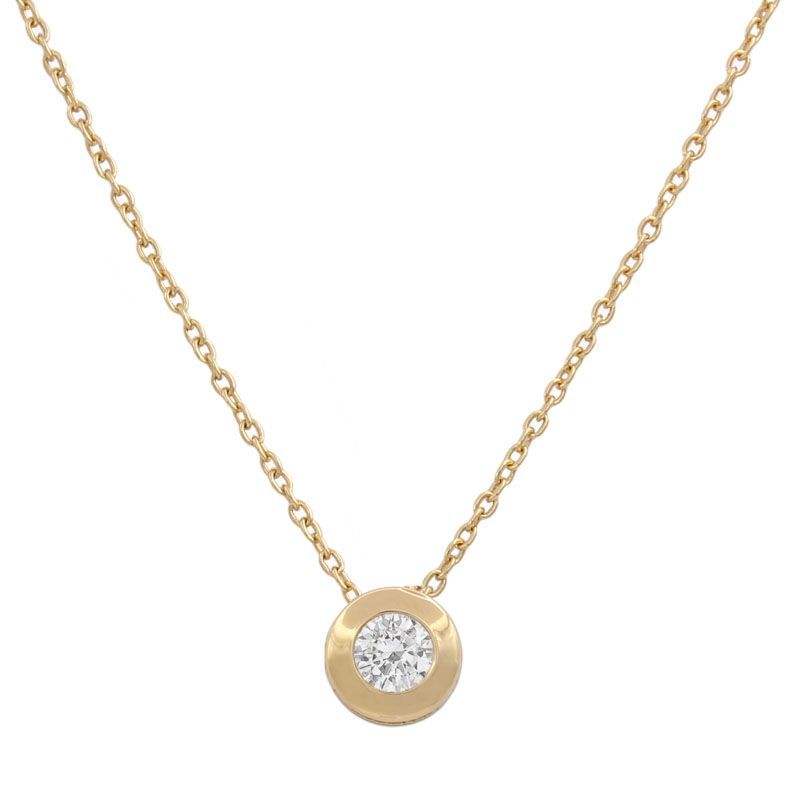 Gargantilla colgante de mujer con chatón en Oro de 18 K con circonita, parte trasera forrada, terminación en brillo