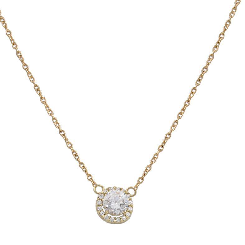Gargantilla colgante para mujer en oro de 18K con diseño circular y piedra central de circonita rodeada de circonitas pequeñas. Cadena fina y elegante, ideal para looks sofisticados. Perfecta para regalar o lucir en ocasiones especiales. Calidad premium y acabado brillante.
