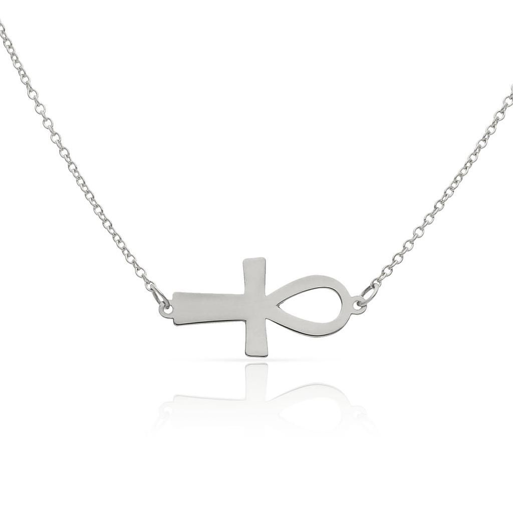 Gargantilla collar cruz de la vida en oro blanco de 18Kilates