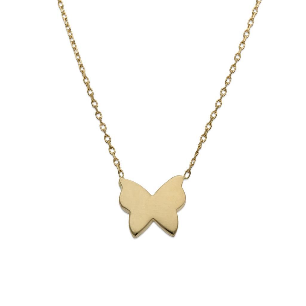 Gargantilla para mujer en oro 18K con colgante en forma de mariposa, diseño elegante y minimalista. Cadena fina con eslabones delicados, ideal para looks sofisticados o como regalo especial. Perfecta para diario o ocasiones especiales, combina con cualquier atuendo.