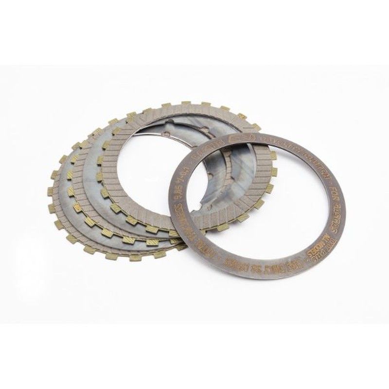 Kit de embrague S3 Racing para Gas Gas, compuesto por discos de metal de alta resistencia con acabado gris y detalles dorados. Diseñado para mejorar el rendimiento y durabilidad del embrague en motocicletas de competición. Ideal para pilotos que buscan mayor tracción y control en condiciones exigentes. Fabricado con materiales de calidad para sopor