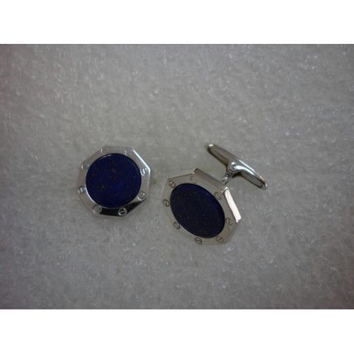 Elegantes gemelos octogonales en oro blanco 18kts con incrustación de lapislazuli azul intenso. Diseño sofisticado con detalles de tornillos decorativos y cierre metálico. Ideal para hombres que buscan un toque de lujo y distinción en sus atuendos formales. Calidad premium, perfectos para ocasiones especiales o uso diario con trajes de vestir.