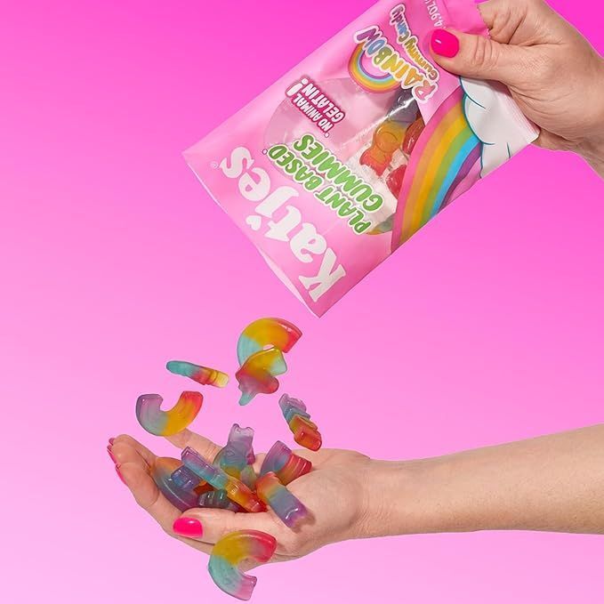 Gominolas veganas Arcoiris de Katja, ideales para disfrutar en cualquier momento. Con colores vibrantes y formas divertidas de osos y arcoíris, estas golosinas de frutas son perfectas para niños y adultos que buscan un dulce saludable y sin ingredientes animales. Hechas con goma de alta calidad, ofrecen un sabor frutal intenso y una textura jugosa.