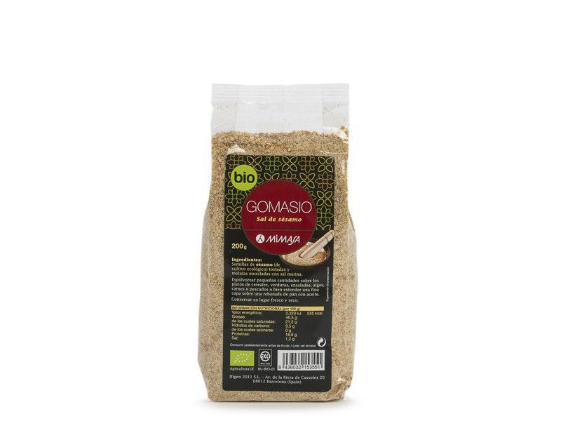 Gomasio Bio 200 g, sal de sésamo orgánica ideal para realzar el sabor de ensaladas, arroces y platos asiáticos. Envasado en bolsa de plástico transparente con cierre hermético para mantener su frescura. Producto ecológico certificado, perfecto para cocinar saludable y con sabor natural. Ideal para amantes de la cocina saludable y con toques orienta