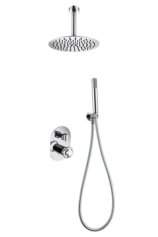 Grifo empotrado de ducha Vesubio en acabado cromo, fabricado en acero inoxidable de alta calidad. Diseño moderno y elegante, ideal para baños contemporáneos. Incluye llave de control circular, cabezal redondo con múltiples salidas de agua y manguera flexible. Fácil instalación y uso diario, garantizando durabilidad y estilo.