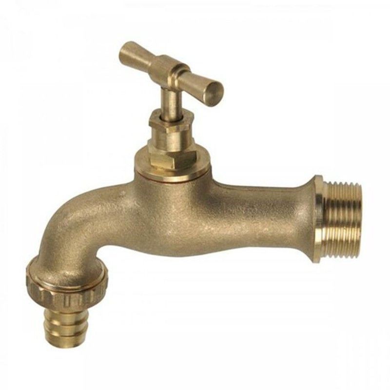 Grifo de jardín de alta calidad con acabado dorado mate, fabricado en metal resistente. Ideal para conexiones exteriores, cuenta con mango en forma de T para un manejo fácil y conexión rápida. Perfecto para riego, lavado de vehículos o uso en terrazas. Diseño robusto y duradero para uso diario en exteriores.