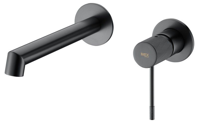Grifo lavabo empotrado Black gun-metal GLD038-GC de Imex, con acabado negro mate y diseño minimalista. Fabricado en acero inoxidable de alta calidad, ideal para baños modernos. Incluye maneta con textura antideslizante para un manejo cómodo y seguro. Montaje en pared con tapa circular elegante. Perfecto para renovar tu baño con estilo y funcionalid