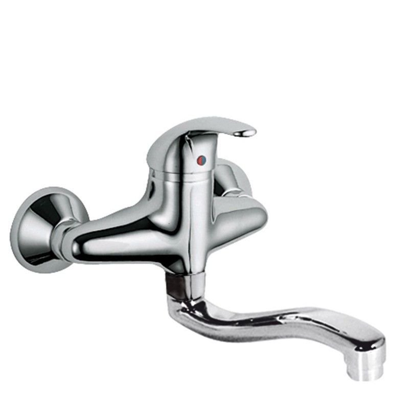 Grifo monomando mural para cocina con acabado cromado brillante en acero inoxidable. Diseño moderno y funcional, ideal para cocinas con espacio reducido. Fácil instalación en pared, mango ergonómico para un control preciso del flujo y temperatura del agua. Resistente a la corrosión y al desgaste, garantiza durabilidad y estilo en tu cocina.