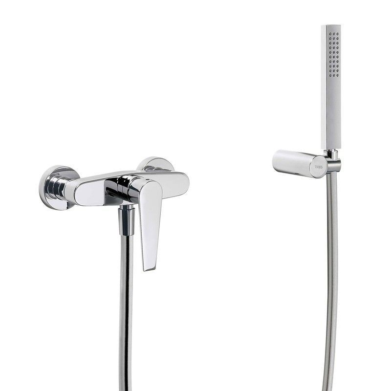 Grifo monomando mural para ducha Class-Tres en acabado cromado, fabricado en acero inoxidable de alta calidad. Diseño moderno y minimalista ideal para baños contemporáneos. Incluye ducha de mano con cabezal rectangular y manguera flexible. Fácil instalación y uso, perfecto para renovar o equipar tu baño con estilo y funcionalidad.
