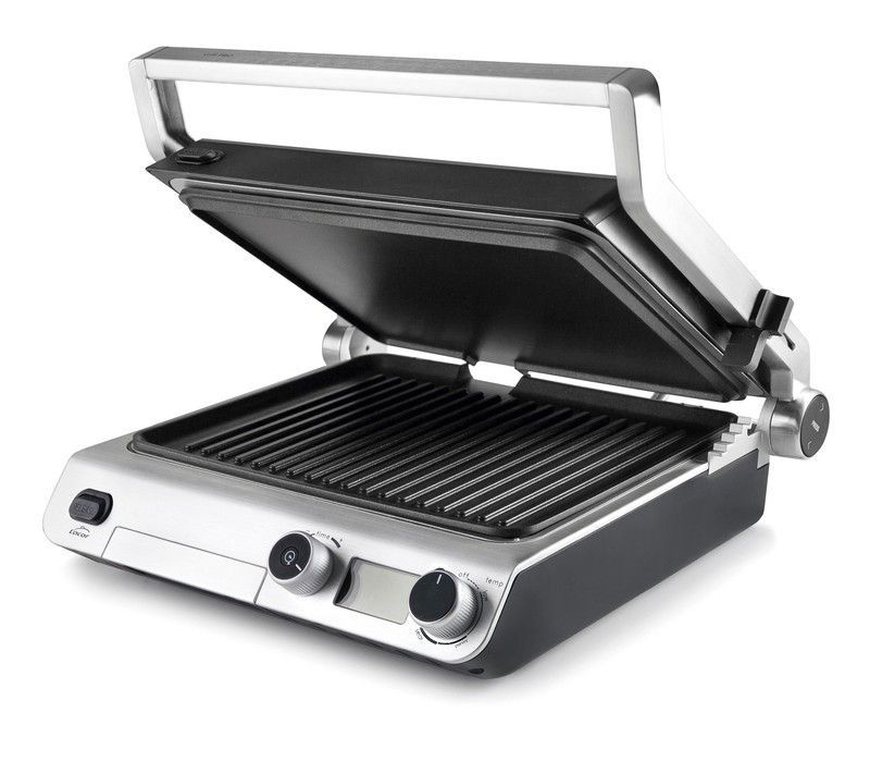 Grill abatible Pro Lacor de 2000W con acabado en acero inoxidable y plástico resistente. Ideal para preparar carnes, pescados y vegetales con un toque de grill. Cuenta con placas antiadherentes con surcos, manija ergonómica y controles precisos para una cocción uniforme. Perfecto para uso en casa o en espacios reducidos. Incluye indicador luminoso