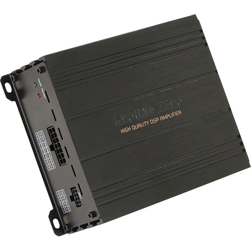 Amplificador de 4 canales con DSP de 8 canales GZCS DSPA-4.60ISO, ideal para sistemas de audio de coche. Fabricado en metal de alta calidad, cuenta con conectores ISO para instalación sencilla y LED indicadores de estado. Diseño robusto y eficiente para mejorar la calidad del sonido en vehículos.