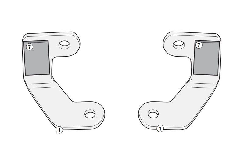 Herrajes Givi 1111kit para modelos NC700X 12>13, NC750X y NC750 DCT 14>15. Fabricados en metal resistente, diseñados para una instalación segura y precisa de portaequipajes en motocicletas. Ideal para motociclistas que buscan una solución robusta y duradera para transportar equipaje. Incluye dos piezas idénticas con orificios de montaje para una fi